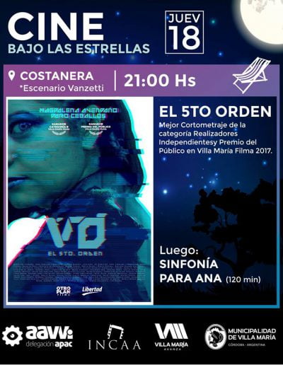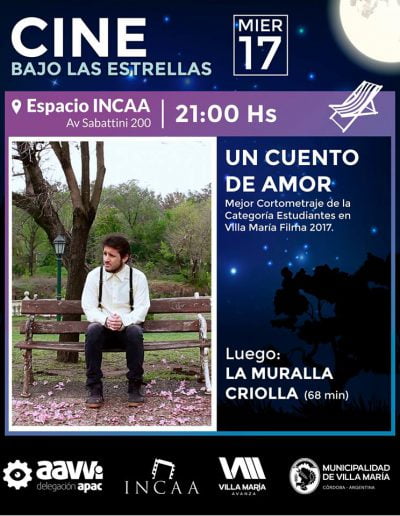 Como resultado de un trabajo conjunto entre AAVVi-APAC y el Espacio INCAA VILLA MARIA, durante el ciclo CINE BAJO LAS ESTRELLAS se proyectarán cuatro cortometrajes de realizadores locales.
