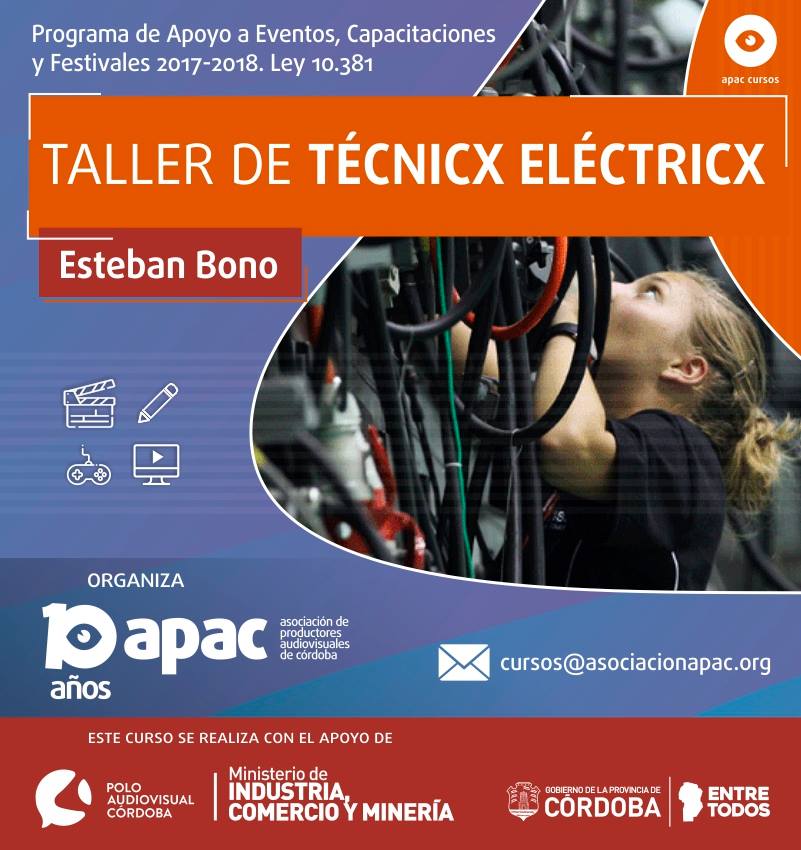 Curso TALLER DE TÉCNICX ELÉCTRICX PARA CINE Y PUBLICIDAD, a cargo de Esteban Bono.